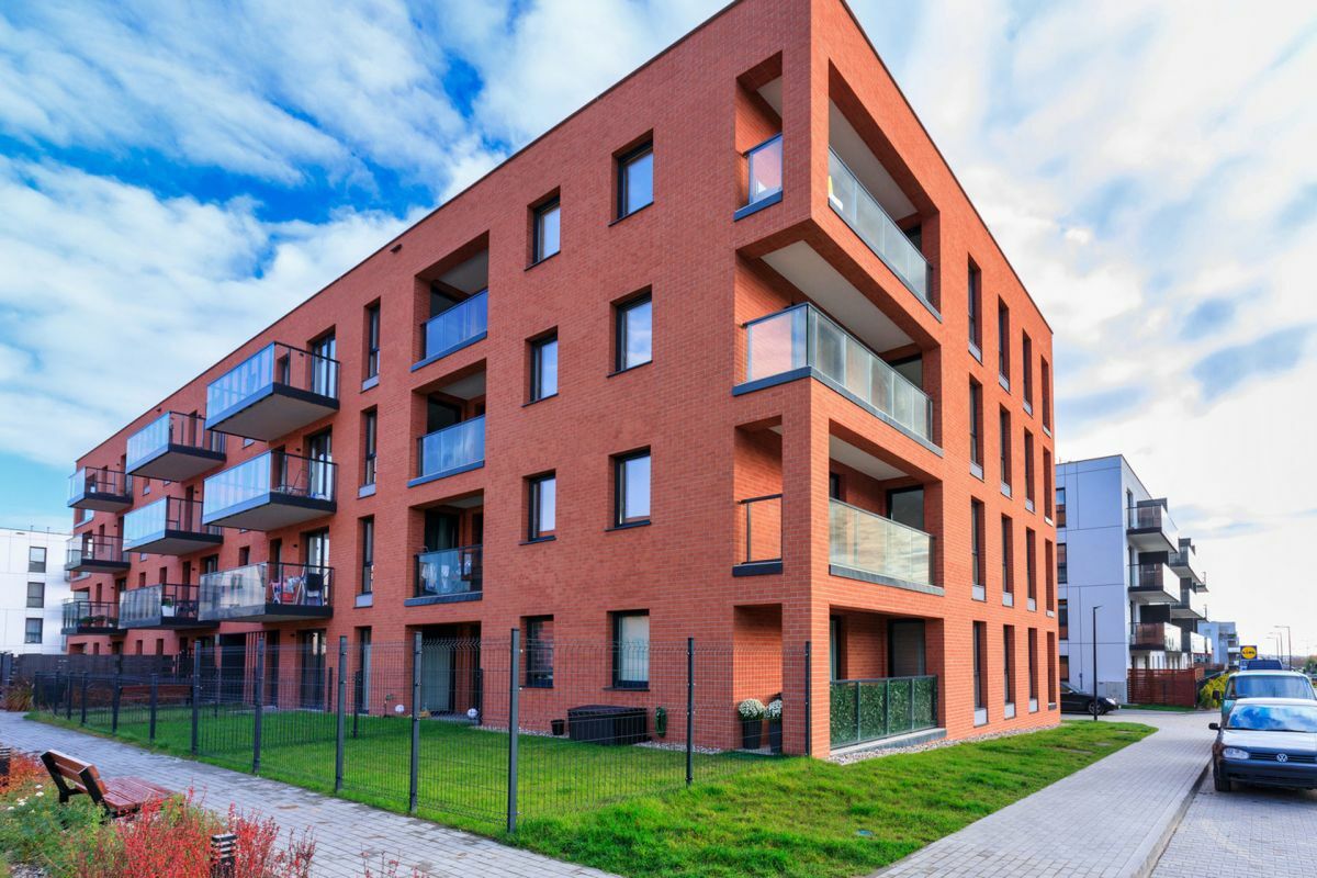 - Biała elewacja idealnie komponuje się z okładziną ceglaną i otaczającą osiedle zielenią. Efektownie prezentują się również balkony z balustradami wypełnionymi szkłem.