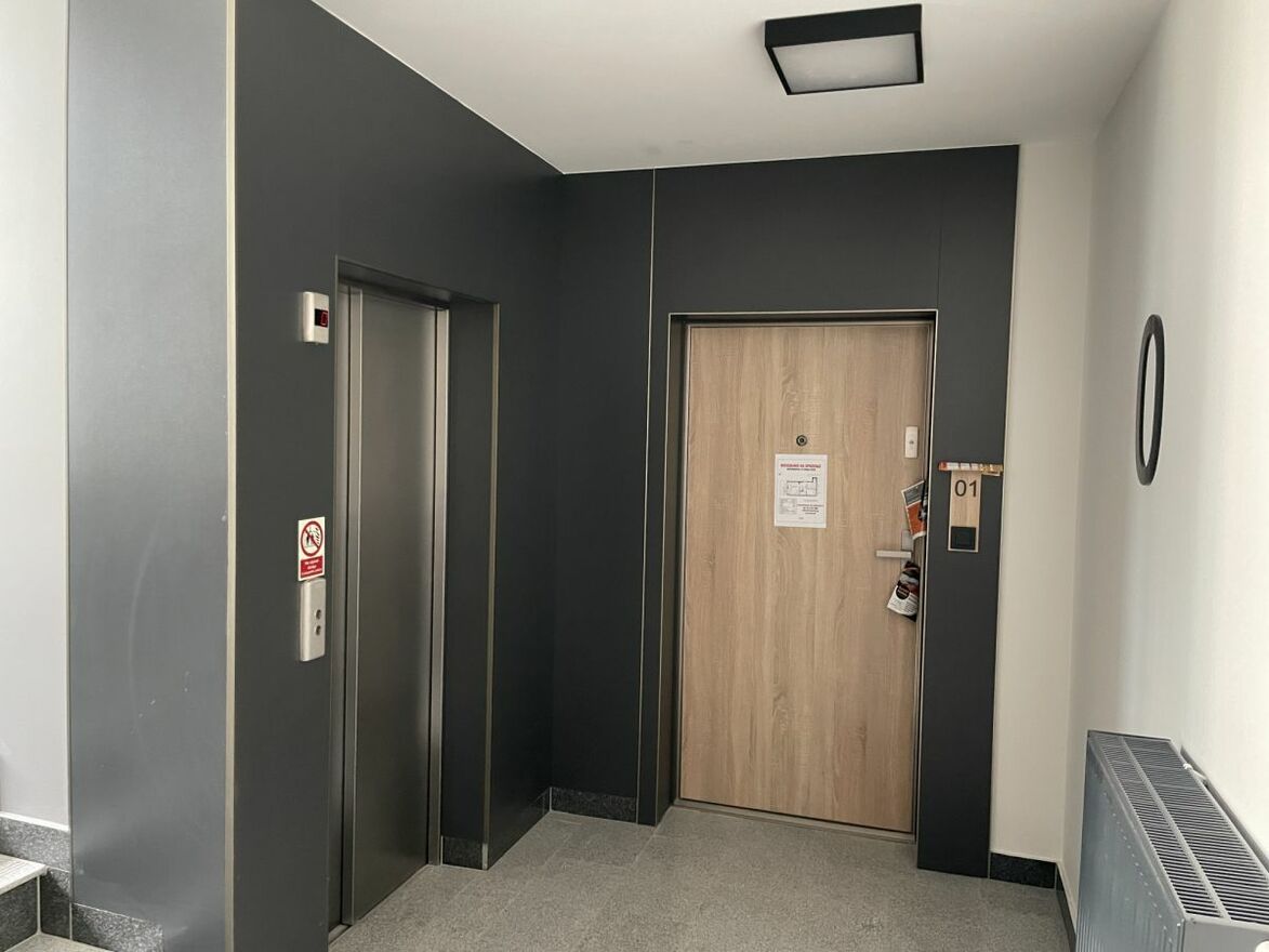 - Wysoki standard mieszkań: Murowane ściany działowe, Balustrady balkonowe wypełnione szkłem, Ściany i sufity szpachlowane i malowane na biało, Parapety wewnętrzne wykonane z granitu.